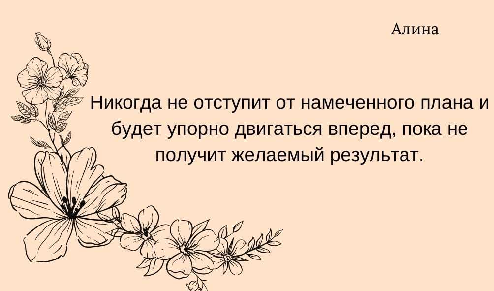 Характеристика имени Алина отводит ей и много негативных черт: она любит хвастаться, прямолинейна до крайности и очень конфликтна. Стремится к лидерству любой ценой, уверена, что каждое ее мнение является истиной и раздает советы направо и налево.